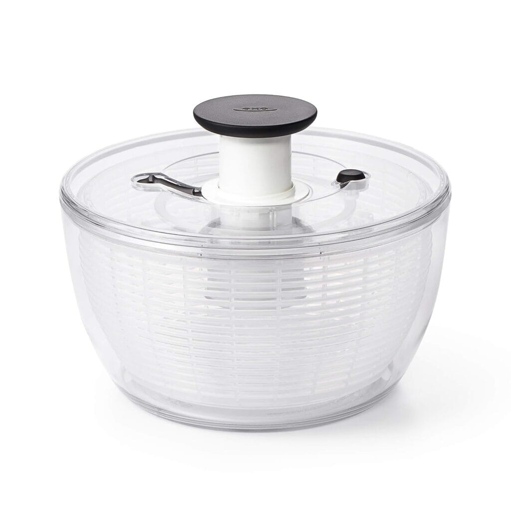 If you’re looking for an easy-to-use salad spinner that gets the job done quickly, you should definitely consider the OXO Good Grips Large Salad Spinner.